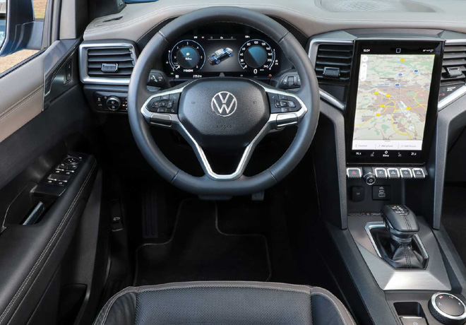 Volkswagen Commercial Vehicles ha implementado una combinación de funciones digitales y botones configurados ergonómicamente y/o interruptores giratorios/pulsadores en el Amarok que son intuitivos de usar. El volumen del sistema de infoentretenimiento y la configuración del sistema de tracción total se controlan, por ejemplo, a través de dichas teclas físicas. Según las especificaciones, estas características robustas y de aspecto premium están enmarcadas en aluminio.