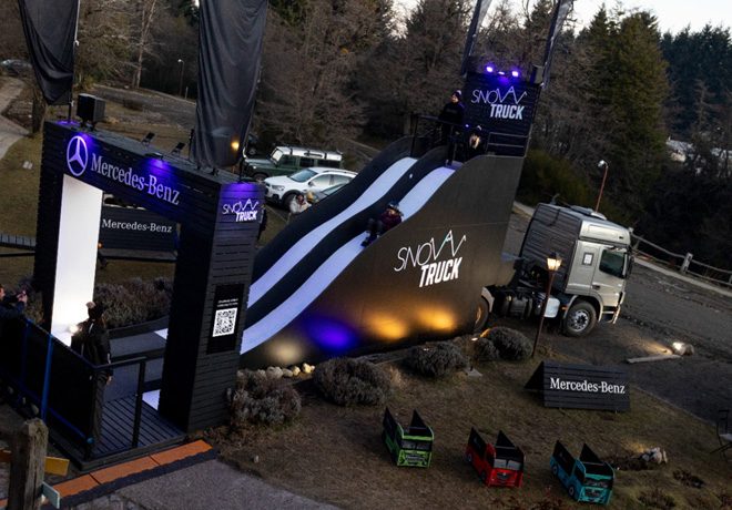 Sobre un camión Atego 1729 S/36, tractor, de producción nacional, la marca desarrolló el Snow Truck, una pista de culipatín de 12 metros de largo y 3,60 metros de altura, abierta atodo el público.