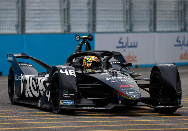 Después del lluvia del sábado, hoy la carrera se disputó con la pista seca. Y luego de los incidentes que hubo en el inicio, en la vuelta 3 Mortara superó a da Costa para pasar a comandar la carrera, seguido por Dennis en segundo lugar. La primera parada para la activación del Modo Ataque fue iniciada por Pascal Wehrlein, quien habÃa subido cinco posiciones hasta el décimo puesto, antes de abandonar. Y otro tanto ocurrió con el restante Mercedes EQ conducido por De Vries que también tuvo que dejar la carrera.