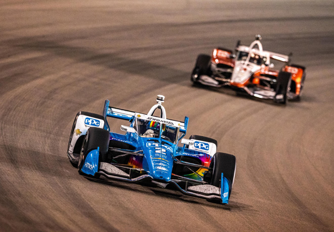 McLaughlin pica en punta seguido por Newgarden, O’Ward, Power, Malukas, Sato, Rahal, Ericsson, Dixon y Palou. Newgarden supera rápidamente a McLaughlin y ambos se escapan al frente. Malukas y Sato superan a Power a 30 del final.