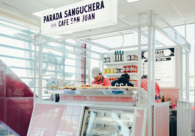 “Parada Sanguchera” es una propuesta gastronómica creada junto a Lele Cristobal, a partir de sándwiches frescos, hechos en el momento, con fiambres y conservas gourmet. Dentro de esta oferta innovadora se pueden encontrar sánguches de mortadela y queso cremoso con berenjenas en conserva; bondiola, queso sardo y tomate en conserva; salame, queso pategrás, pepinillos y mostaza; cantimpalo, queso provolone y ajíes en vinagre; jamón cocido, con queso danbo y manteca; y como opción veggie: queso crema, alcaparras, berenjenas en conserva y queso gouda. El énfasis está puesto en la calidad de la materia prima y la abundancia de los ingredientes: cada sándwich lleva 200 gramos de fiambre y queso elaborados en la provincia de Salta; mientras que el pan se prepara para el día.