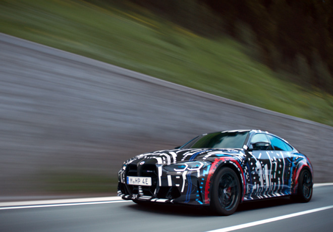 Con el fin de llevar ahora a la carretera la tecnología de propulsión y chasis diseñada para futuros vehículos puramente eléctricos de alto desempeño para pruebas y ajustes, los ingenieros de BMW M GmbH han desarrollado un vehículo de prueba que lleva los genes apropiados, tanto en términos de típica dinámica M y en el campo de la movilidad eléctrica. Basado en el BMW i4 M50, se ha creado un coupé de propulsión puramente eléctrica con una carrocería modificada al estilo típico de BMW M GmbH, cuyos amplios arcos de rueda permiten la integración de diseños de eje delantero y trasero de alto desempeño fabricados específicamente.