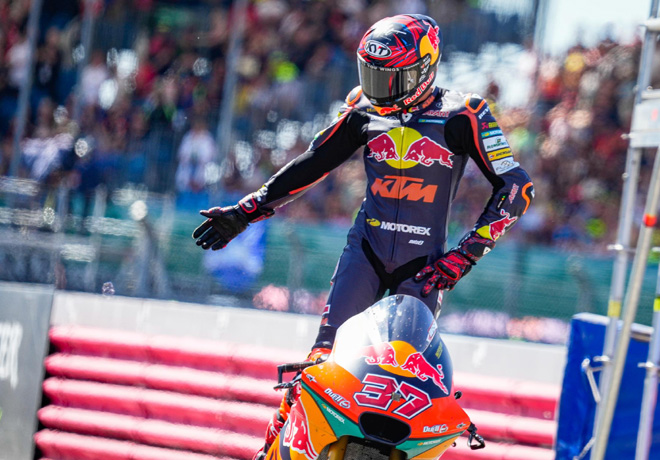 Por entonces, Rins ostentaba una renta de 7 décimas sobre ambos pilotos oficiales de Ducati, pero no lograrÃa consumar una escapada pese a su portentoso ritmo. Con Viñales agitando el baile un par de vueltas después, MartÃn afrontaba el momento de la verdad para encaramarse al podio. Sin embargo, no solo no serÃa capaz, sino que su rival por el último asiento de fabrica de Ducati, Enea Bastianini (Gresini Racing MotoGP), protagonizarÃa una escalada épica después de haberse tocado con el español y Marco Bezzecchi (Mooney VR46 Racing Team) en la salida perdiendo parte de sus alas.