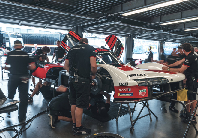 Las jornadas en el legendario circuito estadounidense fueron muy exigentes para el prototipo híbrido de 680 CV de potencia (500 kilovatios). Las condiciones externas, con temperaturas en torno a los 35 grados centígrados, una humedad elevada, superior al 90 por ciento, y lloviznas esporádicas llevaron al límite al hombre y a la máquina. Fue un escenario realmente complejo y, por tanto, óptimo para preparar el Porsche 963 de cara a las intensas competencias de la temporada 2023.