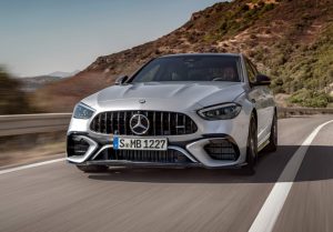 denominación y a esos conceptos también se agrega “evolución”. En el lanzamiento mundial, el piloto oficial de Mercedes-AMG Petronas George Russell aparece en escena manejándolo en una pista de carreras y mostrando las impresionantes virtudes del nuevo C 63 SE Performance.