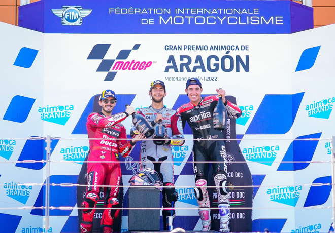 La gran batalla del GP de Aragón estaba llamada a brindar grandes alegrÃas a Ducati. Francesco Bagnaia (Ducati Lenovo Team) se presentaba en MotorLand Aragón con 4 victorias consecutivas, a las puertas de igualar a Valentino Rossi y Marc Márquez (Repsol Honda Team) como únicos pilotos en conseguir 5 triunfos seguidos en la era MotoGP.