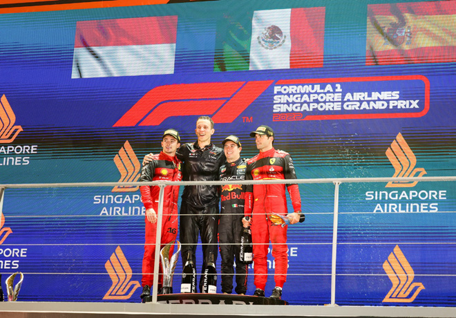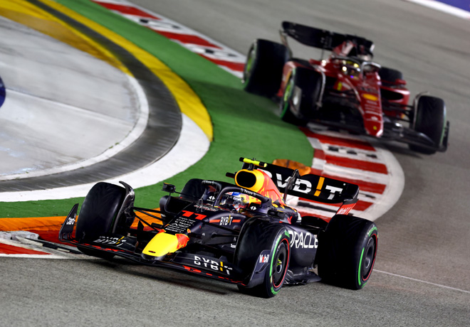 Sergio Pérez se impuso ante Charles Leclerc en las calles de la Marina Bay, mientras que Carlos Sainz completó el podio y Max Verstappen terminó séptimo en un GP de Singapur lleno de acción. Pérez retuvo la victoria a pesar de recibir una penalización de cinco segundos después de la carrera por superar al Auto de Seguridad.