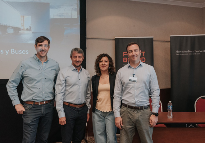 La apertura del encuentro contó con la participación de Fernando Rivero, Director de Desarrollo de Red Comercial de Ventas y Postventa; Paula Diaz, Gerenta de Servicios al Cliente y Fleetboard de Mercedes-Benz Camiones y Buses; Luciano Maiolino, Gerente de Venta y Marketing de Postventa Mercedes-Benz Camiones y Buses; y Guido Casaro, Gerente de Estrategia y Desarrollo de Red y Capacitación de Mercedes-Benz Camiones y Buses.