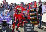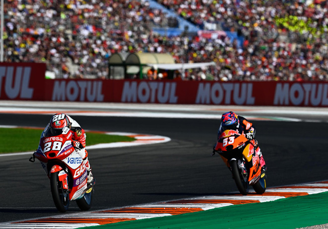 En una carrera de resistencia con múltiples caÃdas y abandonos, que resolverÃa los últimos tÃtulos en juego, los últimos puntos de la temporada se los repartirÃan Marco Bezzecchi (Mooney VR46 Racing Team), la dupla del Tech3 KTM Factory Racing -Raúl Fernández y Remy Gadner-, Takaaki Nakagami (LCR Honda IDEMITSU) y Fabio Di Giannantonio (Gresini Racing MotoGP). Tras ver la bandera a cuadros, Bagnaia y Ducati daban rienda suelta a la euforia tras saborear un tÃtulo muy perseguido durante años.