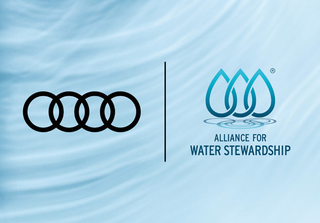 Audi es el primer fabricante de autos premium en unirse a la Alianza para la Gestión Sostenible del Agua (AWS: Alliance for Water Stewardship). Esta iniciativa mundial de empresas, ONGs y sectores públicos se concentra en la gestión del agua a lo largo de toda la cadena de valor.