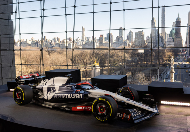 Coincidiendo con la famosa Semana de la Moda de Nueva York, el lanzamiento fue perfecto para la marca de moda AlphaTauri, propiedad de Red Bull y que reemplazó a Toro Rosso como el nombre oficial del equipo de Faenza en 2020.