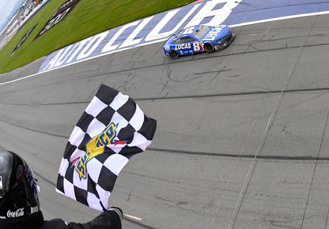 En su vuelta a la marca del moño, Kyle Busch (Nº8 / Chevrolet) consigue su primera victoria con el equipo RCR y la número 61 dentro de la división mayor de NASCAR. En 2005, el menor de los Busch hizo su debut en Cup conduciendo un Monte Carlo del Hendrick Motorsports y en 2008 firmó con Joe Gibbs Racing para conducir un Toyota Camry, marca y modelo que utilizó hasta el año pasado.