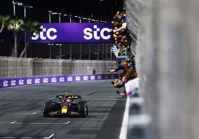 Sergio Pérez convirtió la pole position en una victoria en el Gran Premio de Arabia Saudita, mientras que su compañero de equipo Max Verstappen se recuperó del puesto 15 en la largada para lograr dos dobletes consecutivos para Red Bull. Fernando Alonso volvió a poner su Aston Martin en el podio con un buen manejo.