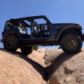 Los modelos Wrangler Rubicon incluyen una desconexión electrónica de la barra estabilizadora delantera para proporcionar un recorrido adicional de las ruedas cuando el terreno lo requiera.