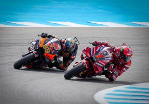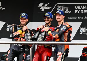 Sin embargo, Francesco Bagnaia (Ducati Lenovo Team) supo mantener el temple de manera magistral entre el caos vivido en Jerez para lograr su segundo triunfo consecutivo en el trazado andaluz tras arrebatarle por la mÃnima un doblete de ensueño a Brad Binder (Red Bull KTM Factory Racing). De nuevo, Jack Miller (Red Bull KTM Factory Racing) completó el podio.