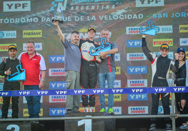 La excelente labor de Nicolás Suárez en el Autódromo de San Jorge tuvo su compensación con su victoria en la primera carrera del fin de semana. Escoltaron al vencedor Sebastián NG a 4.356 y Santiago Chiarello a 6.997. Lo realizado por Suárez en la primera jornada fue excelente, imponiéndose en cada una de las sesiones. La última de ellas con la victoria después de haber largado desde el octavo lugar.