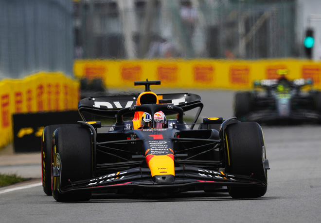 Max Verstappen con el Red Bull logró seis victorias en ocho carreras en 2023 con un absoluto dominio durante el Gran Premio de Canadá que ganó de punta a punta, superando al Aston Martin de Fernando Alonso y al Mercedes de Lewis Hamilton, los tres integrantes del podio.
