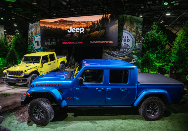 Dos nuevos versiones, Mojave X y Rubicon X, amplían la línea Gladiator y ofrecen cámara todoterreno integrada, paragolpes de acero y asientos delanteros ajustables eléctricamente en 12 direcciones y tapizados con piel napa.