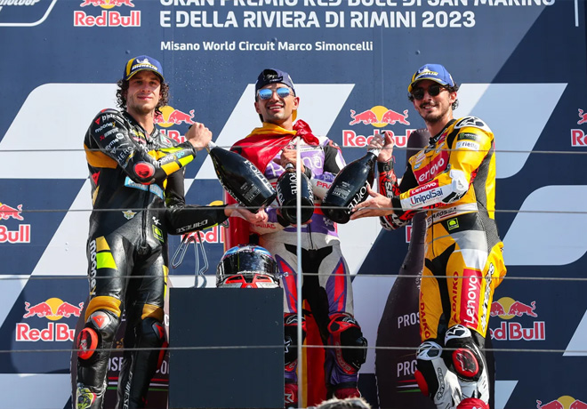 MotoGP – Misano 2023 – Marco Bezzecchi – Jorge Martin – Francesco Bagnaia en el Podio | Motores a Pleno ® ::: 34º Aniversario / 25 años en internet :::