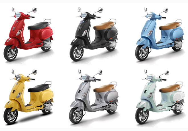 La nueva Vespa VXL 150 se ofrece en seis colores: negro, blanco, gris, amarillo, celeste y rojo.