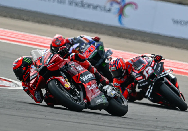 El piloto de Ducati gana una inteligente carrera en el GP de Indonesia y saca el máximo provecho de la caída de Martín. Viñales y Quartararo completan un batallado podio. El triunfo de Bagnaia le permite a Ducati conquistar el tercer título de constructores para la marca italiana.