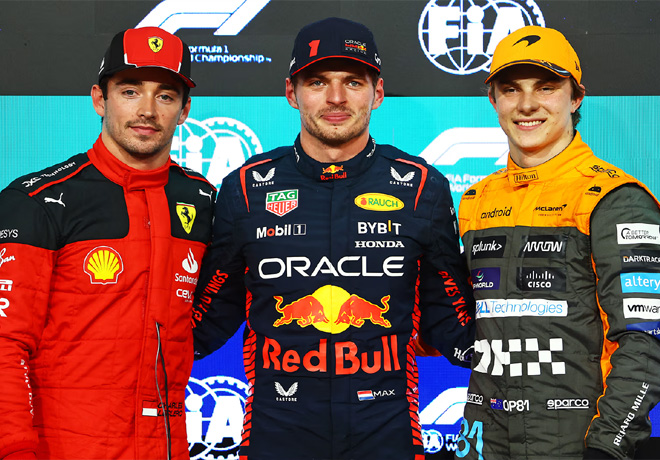 Charles Leclerc fue el rival más cercano a Verstappen, siendo la Ferrari más fuerte tras la ausencia de su compañero de equipo, Sainz, quien se vio perjudicado por el tráfico en su salida en la Q1, mientras que Piastri aprovechó un error de su compañero de equipo Lando Norris para quedar tercero.