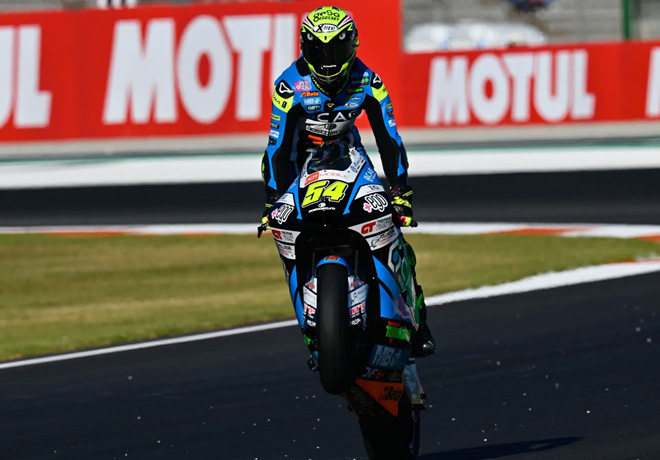 Después de este revés, «Pecco» cedió posiciones respecto a Binder y Miller. Cuando todo parecÃa más estable el sudafricano, que venÃa liderado desde hacÃa unas cuantas vueltas, se fue largo y se situó sexto. En sus ganas por progresar, el «33» sacó de la lÃnea correcta a Alex Márquez (Gresini Racing MotoGP), que le valió la penalización de un puesto. Al frente se situaban Miller, «Pecco»‘ y Zarco. Cuando parecÃa que no podÃa ocurrir nada más, el australiano se fue al suelo dejando al ya Campeón como lider de la competencia.