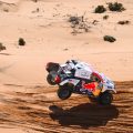 La pesadilla de las pinchaduras dejó a Nasser Al Attiyah a casi 25 minutos y a su compañero de equipo Sébastien Loeb a casi 23 minutos, mientras que Guerlain Chicherit se dejó 22 minutos. En esta sesión de tortura, que también ha sido dolorosa para Stéphane Peterhansel (¡32 minutos perdidos!), han sido los outsiders que partÃan desde lejos los que han salido mejor parados. Son los casos de Giniel de Villiers (3º a 9’18»), Vaidotas Zala (4º a 10’42»), Romain Dumas (5º a 12’18») y Lucas Moraes (6º a 13’25»)… en total, seis Toyotas se han colado en el Top 8.