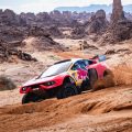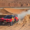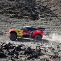 Sébastien Loeb persiguió la misma estrategia con tal celo que se saltó deliberadamente un way-point, lo que le valió una penalización de 15 minutos y aumento a 43 minutos su retraso respecto al líder, Yazeed Al Rajhi: ¡una apuesta muy atrevida! El saudí no se arriesgó hoy y menos aún Nasser Al Attiyah, que marcó el ritmo en modo ataque, como es habitual cuando quiere asestar un buen golpe. Al término de los 118 km, se impone frente a Guerlain Chicherit por 1’51» para adjudicarse su 48ª victoria de etapa, la primera con un Hunter, tras haber ganado ya con un BMW, un Volkswagen, un Hummer, un Buggy Jefferies, un Mini y un Toyota, es decir, 7 marcas, emulando a «Peter» en la categoría coches.