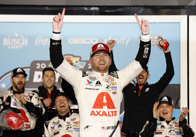 Alex Bowman, compañero de Byron, fue segundo, dándole a Hendrick un nuevo 1-2 en las 500 millas de Daytona, tal como lo hicieran Jimmie Johnson y Dale Earnhardt Jr. en 2014. Tercero llegó Christopher Bell, seguido por Corey LaJoie, Bubba Wallace, AJ Allmendinger, John Hunter Nemechek, Erik Jones, Noah Gragson y Chase Briscoe completado el Top Ten.