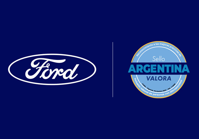 Ford Argentina agradece a la Red de Empresas Inclusivas de la República Argentina, por haberla reconocido con el sello de «Argentina Valora», una distinción pública que otorga a las empresas públicas y privadas que se destacan el trabajo en materia de inclusión laboral -concreta y demostrable- de personas con discapacidad. Ford es la primera y única automotriz en recibir este sello.