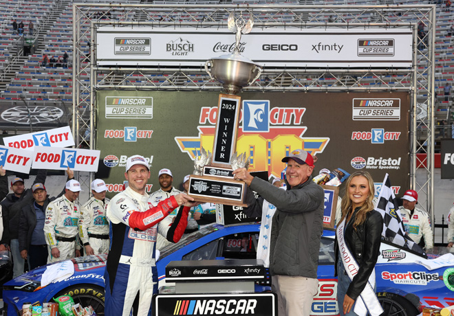 Denny Hamlin pudo contener el asedio de su compañero de equipo Martin Truex Jr, para ganar la carrera de la máxima división de NASCAR en el Bristol Motor Speedway. Hamlin lideró la mayor cantidad de vueltas, 163 de las 500, para conseguir su primera victoria en 2024 y la segunda consecutiva en Bristol.