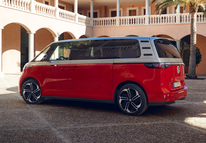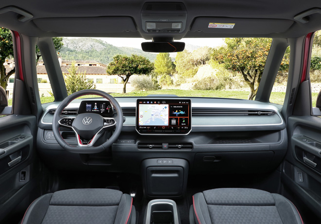 Se ofrece una nueva opción de pintura «Cherry Red» exclusivamente para el ID. Buzz GTX. Este tono de rojo se puede configurar como pintura monocolor y, opcionalmente, en combinación con «Mono Silver Metallic» como acabado bicolor. Además, estarán disponibles otros seis colores sólidos y cuatro opciones de pintura de dos tonos.