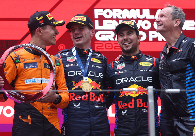 Max Verstappen convirtió la pole position en victoria en un Gran Premio de China lleno de incidentes y adelantamientos, superando a Lando Norris de McLaren y a su compañero de equipo de Red Bull, Sergio Pérez, para lograr cuatro victorias en cinco carreras en lo que va de temporada.