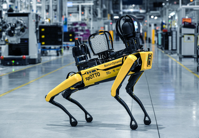 Un robot de cuatro patas llamado «SpOTTO» se unió recientemente al equipo de la Planta Hams Hall de BMW Group en el Reino Unido. El perro robótico autónomo escanea las instalaciones de la Planta, apoya al mantenimiento y asegura que los procesos de producción se lleven a cabo sin problemas.