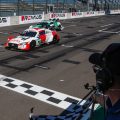 Van der Linde, a pesar de tener 20 kg de lastre por su victoria del sábado, mantuvo la presión sobre Preining hasta el final, pero el piloto oficial de Porsche estuvo relativamente tranquilo cuando llegó a la bandera a cuadros con su victoria, por 1,4 segundos.