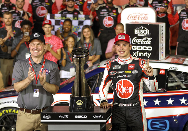 El piloto del Toyota Nº20 del Joe Gibbs Racing comenzó tercero, lideró 90 vueltas y ganó la segunda Etapa de la competencia número 14 de la temporada 2024.