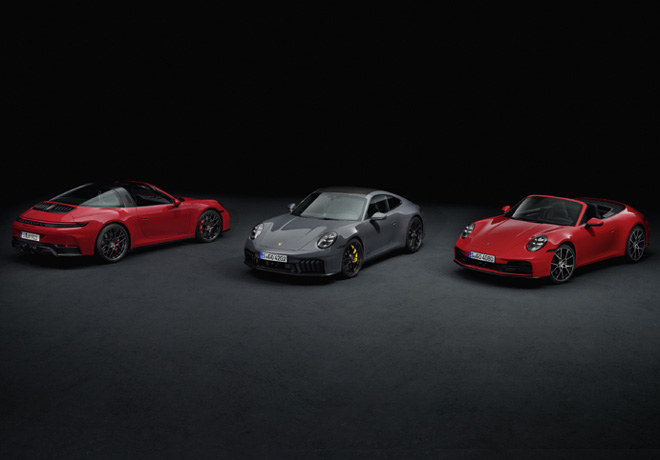 El nuevo 911 Carrera ya se puede ordenar como Coupé y Cabriolet con tracción trasera. El 911 Carrera GTS, disponible tanto con tracción trasera como en las cuatro ruedas, y la variante de carrocería Targa (exclusivamente con tracción en las cuatro ruedas) también están disponibles. Ambas variantes del modelo vienen equipadas de serie con Porsche Doppelkupplung (PDK).