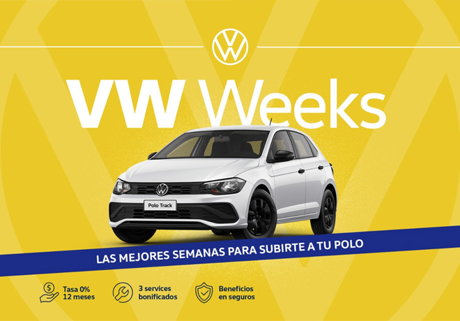Volkswagen Argentina actualiza las condiciones de las ya conocidas «VW Weeks» con la exclusiva financiación a tasa 0% para los modelos Nivus, T-Cross, Taos, Saveiro y Amarok V6. Una de las novedades es que a partir de este mes se incorpora también el VW Polo en versión «Track».