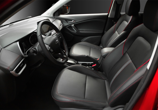 En el interior, Tracker RS se distingue por contar con asientos, volante, paneles de puertas y consola en acabado negro premium con costuras de adorno rojas, a la par que ofrece el ya caracterÃstico equipamiento de conectividad e info-entretenimiento MyLink con proyección inalámbrica, sistema de asistencia OnStar y aplicación myChevrolet, además de Wi-Fi nativo hotspot a bordo.