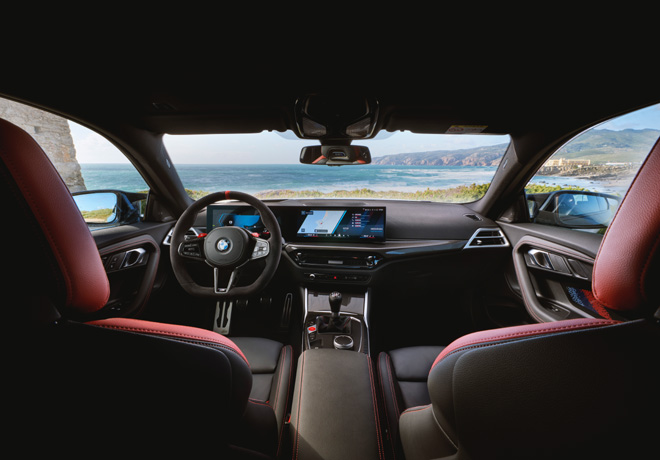 El contenido específico de M en el BMW Curved Display y el BMW Head-Up Display opcional realza el aura de automóvil deportivo progresivo del tablero de instrumentos. El agrupamiento de pantallas completamente digitales, compuesto por una pantalla de información de 12.3 pulgadas y una pantalla de control de 14.9 pulgadas, ahora proporciona el escenario para la última evolución del sistema de control/operación BMW iDrive basado en Sistema Operativo BMW 8.5. Las funciones del sistema de control del clima ahora también se operan digitalmente. Los ajustes de temperatura y ventilación, así como la calefacción de los asientos y, si se especifica, la calefacción del volante en el nuevo BMW M2 se pueden controlar usando una opción de menú especial en el área inferior de la pantalla de control o por comando de voz con la ayuda del Asistente Personal Inteligente de BMW.