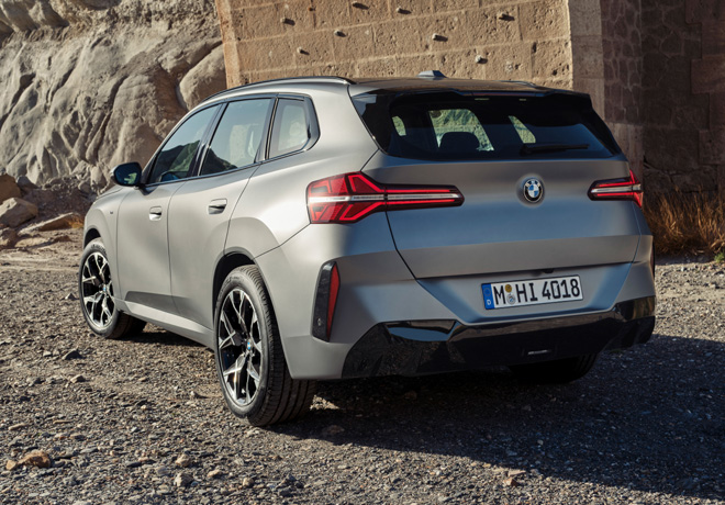 Faldones laterales audaces y una lÃnea de techo que se extiende profundamente hacia la parte trasera son las caracterÃsticas distintivas de la silueta deportiva del nuevo modelo, mientras que las salpicaderas notablemente ensanchadas crean la impresión de una mayor anchura en la parte trasera. La ventana trasera montada al ras está bordeada por un largo alerón de techo y por deflectores de aire laterales adyacentes. En la parte trasera, todas los variantes de modelo, a excepción del BMW X3 M50 xDrive, vienen con tubos de escape integrados fuera de la vista en el parachoques trasero. La interpretación fresca de la gráfica en forma de T caracterÃstica y una barra horizontal satinada con indicadores luz direccional integrados ayudan a dar a las luces traseras una apariencia muy moderna.