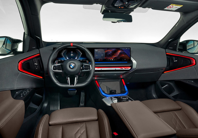 La cabina del nuevo BMW X3 combina la robusta funcionalidad de un SAV con amplio espacio interior y un ambiente premium lleno de estilo individual. El BMW Curved Display, y el BMW Interaction Bar, los volantes con aro de fondo plano y la palanca selectora de cambio de nuevo diseño son los elementos definitorios del enfoque moderno del diseño centrado en el conductor de BMW en la cabina. Otros aspectos destacados especÃficos del modelo incluyen elementos de luz en un color contrastante en la consola central y los paneles de las puertas. Esta nueva caracterÃstica de diseño se extiende a la parte delantera de los revestimientos de las puertas del conductor y del pasajero delantero, donde forma un borde alrededor de los botones de función, los controladores de ventilación, las rejillas de ventilación y las robustas manijas de puerta tÃpicos de los modelos BMW X.