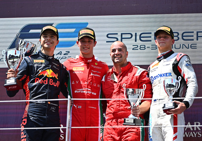 Oliver Bearman se llevó la victoria en la Spielberg Sprint Race, realizando una actuación controlada para superar a Josep MarÃa Martà de Campos Racing para lograr su primera victoria de la temporada.