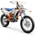 La suspensión incorpora una horquilla WP APEX Big Piston de 43 mm no ajustable con 150 mm de recorrido y un amortiguador de emulsión WP APEX, con ajuste de precarga en la parte trasera. A su vez, el chasis está también unido a un basculante ligero y curvado totalmente nuevo, que rodea un amortiguador que ha cambiado su ubicación: ahora lo encontramos en un montaje descentrado para permitir el diseño de una caja de filtro de aire más grande, reduciendo además la altura del asiento; un aspecto este último que ha sido buscado para permitir una mayor accesibilidad a un número superior de potenciales pilotos, sin comprometer por ello la estabilidad ni el comportamiento.