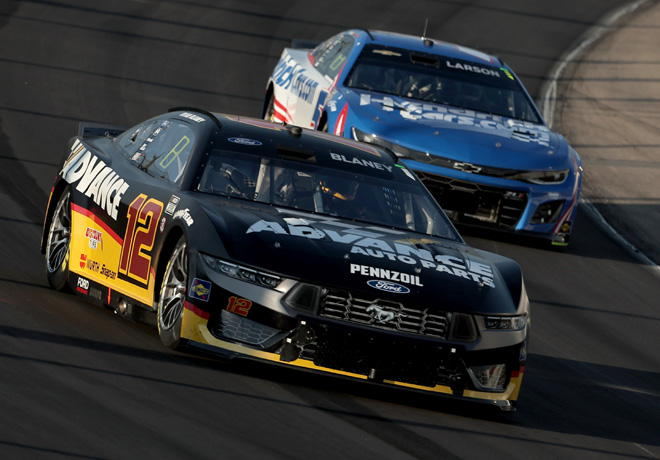 En total lideró cuatro veces durante 201 vueltas de 350 en la pista de 0,875 millas que fue parcialmente repavimentada en los dos carriles inferiores de las curvas. A Byron no le sorprendió que Blaney ganara la carrera con dos neumáticos nuevos, dada la calidad del piloto del Ford Nº12 de Team Penske.