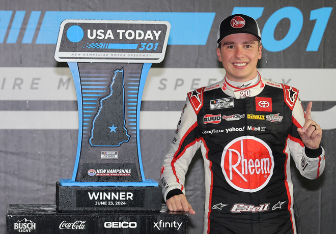 Christopher Bell logró su tercera victoria de la temporada en la división mayor de NASCAR en overtime, tras la lluvia que cayó en el New Hampshire Motor Speedway.