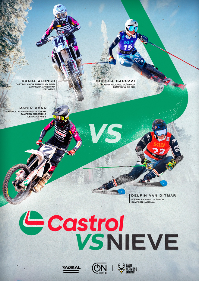 Representando a Castrol, estuvieron Guadalupe Alonso y Darío Arco, pilotos del equipo de motocross Castrol – AXION energy MX Team enfrentándose contra dos profesionales y campeones nacionales y que forman parte del equipo nacional olímpico de ski, Delfín Van Ditmar y Chesca Baruzzi, en un formato innovador que busca resaltar la performance de los lubricantes de la marca.