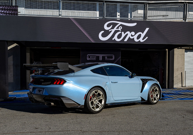 Además de la potencia para alcanzar la velocidad máxima de 325 km/h, el Mustang GTD cuenta con un sistema de reducción de arrastre que altera el ángulo del alerón trasero y activa los flaps delanteros para mantener el equilibrio ideal entre el flujo de aire para aumentar la velocidad y la fuerza descendente para la adherencia, según la condición de rodaje.