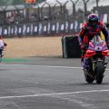 Con los pilotos tratando de manejar las delicadas condiciones de la pista, Bagnaia, Fabio Di Giannantonio (Pertamina Enduro VR46 Racing Team), antes de irse al suelo, y Márquez se enzarzaron en una lucha por la sexta posición, perdiendo algo de terreno respecto al grupo que lideraban Acosta, Morbidelli, Bezzecchi y un Bastianini que fue perdiendo ritmo paulatinamente tras haber llegado a rodar segundo. Martín, por su parte, mantenía una ventaja de un segundo en cabeza.